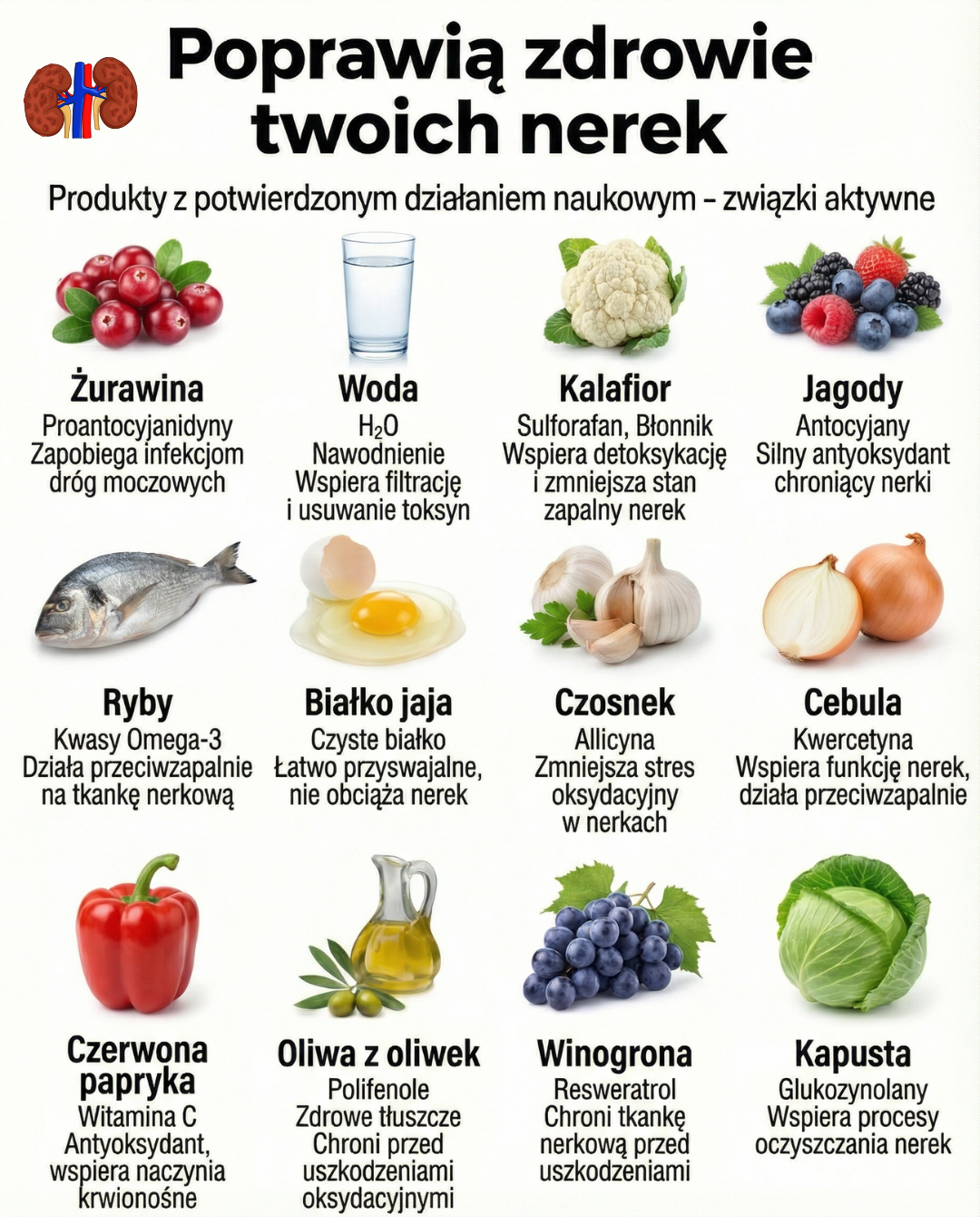 Jagody i żurawina, bogate w antyoksydanty, chronią nerki przed uszkodzeniami oksydacyjnymi. Badania wskazują, że spożywanie antyoksydantów zmniejsza ryzyko przewlekłej choroby nerek.
