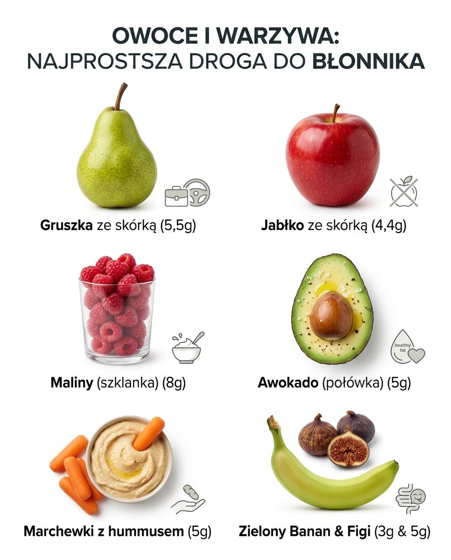 Świadomie dodawaj błonnik do posiłków. Znajdziesz go w warzywach, owocach, pełnoziarnistych produktach i nasionach. Stopniowo zwiększaj ilość, aby uniknąć problemów trawiennych.