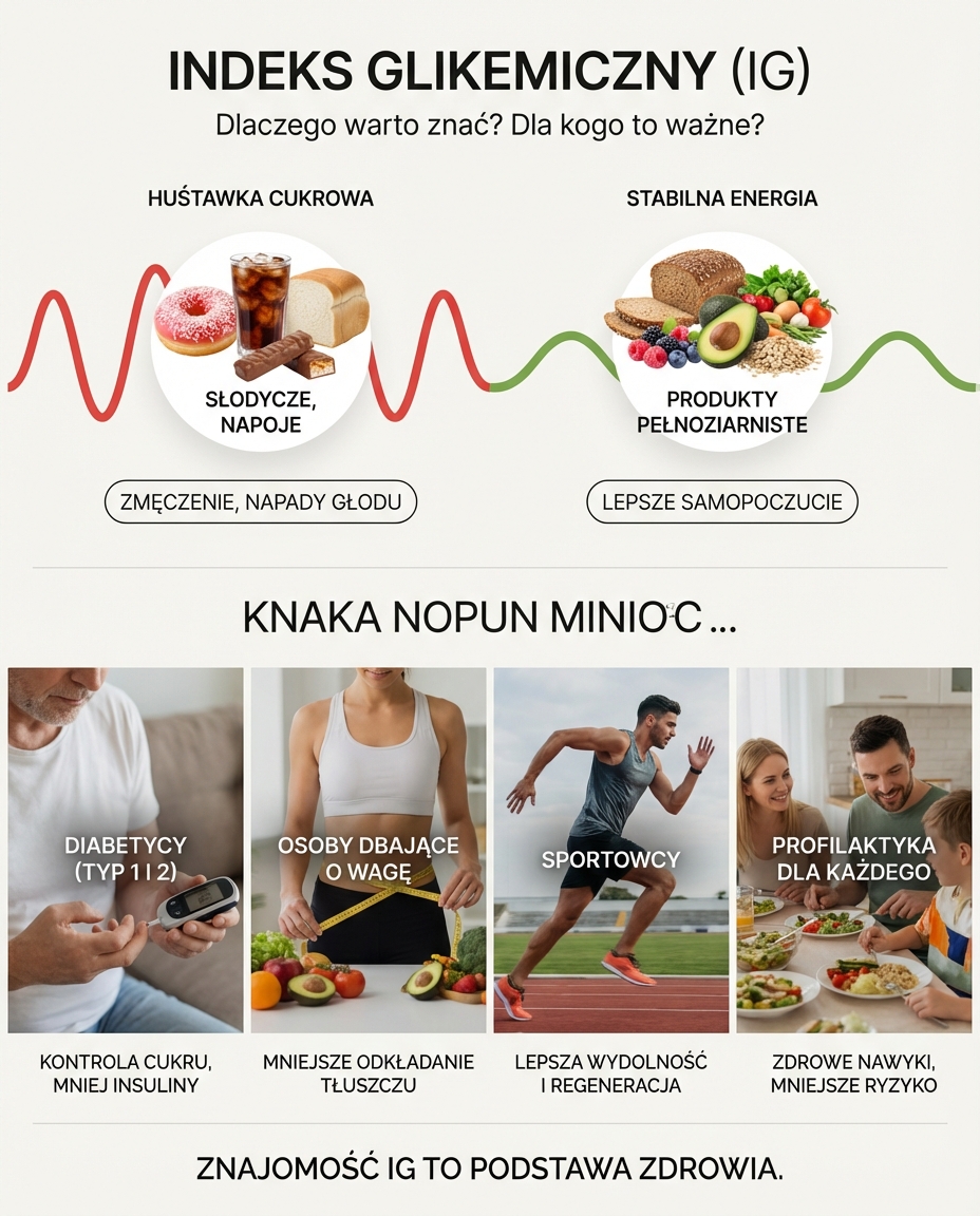 Indeks glikemiczny (IG) to miara wpływu pokarmu na poziom cukru we krwi. Unikanie wysokiego IG pomaga utrzymać stabilny poziom energii i zapobiegać problemom zdrowotnym.